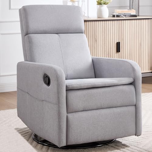 View full detailsSwivel Rocking Recliner Chair for Adults, Rocker Nursery Glider Chair for Living Room Bedroom, Upholstered Fabric Reclining Single Sofa Chair(Light Grey)