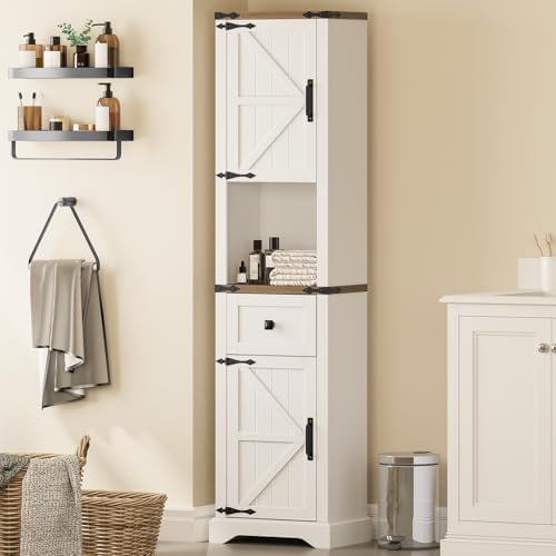 View full detailsVabches 66" Tall Farmhouse Bathroom Storage Cabinet with Barn Doors and Drawer, Narrow Storage Unit, Adjustable Shelves & 5-Tier Space, Freestanding Cabinet for Bathroom, Living Room, Kitchen