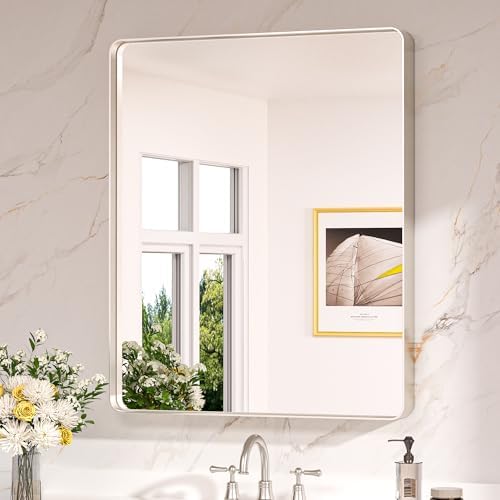 View full detailsKeonjinn Brushed Nickel Mirror 40 x 30 Inch Large Silver Bathroom Mirror for Over Sink, Rounded Rectangle Farmhouse Vanity Mirror with Metal Frame, HD Tempered Glass Wall Mirror(Horizontal/Vertical)