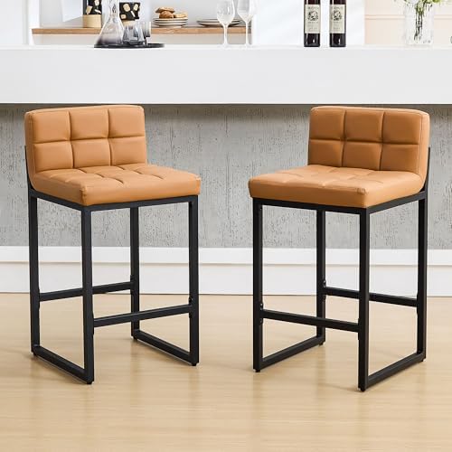 View full detailsCounter Height Bar Stools Set of 2, Modern Faux Leather Counter Stools with Low Back and Footrest, Upholstered Bar Chairs for Kitchen Island, Bar, Counter (Caramel Brown, 2Pcs 26" Bar Stools)