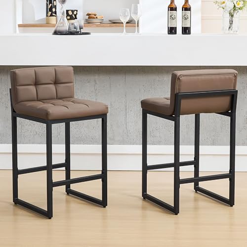 View full detailsCounter Height Bar Stools Set of 2, Modern Faux Leather Counter Stools with Low Back and Footrest, Upholstered Bar Chairs for Kitchen Island (Coffee Brown, 2Pcs 26" Bar Stools)