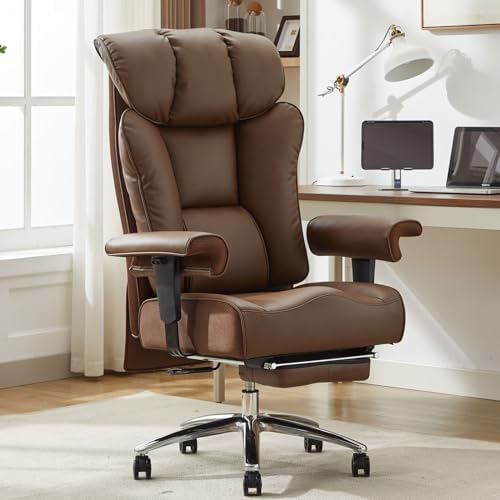 View full detailsBig and Tall Ergonomic Office Chair 450LBS with Foot Rest, High Back PU Leather Executive Chair with Adjustable Padded Armrests, Lumbar Support for Home or Work, Heavy Duty Computer Chair, Brown