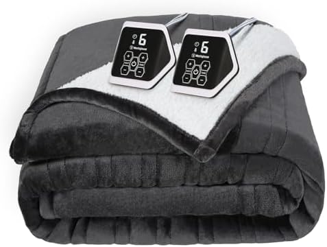 View full detailsWestinghouse Heated Blanket Queen Size, Soft Flannel to Sherpa Electric Blanket with 10 Heating Levels, 12 Hours Auto Off, Fast Heating Blanket, Machine Washable, 84x90 Inch, Charcoal