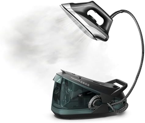 View full detailsRowenta Iron Steamer for Clothes Master Steam Station, Professional Steam Iron for Clothes with Stainless Steel Soleplate, 57 Oz, 400 Microsteam Holes, Built-In Pump, 1750 Watts, Black/Green, VR8338