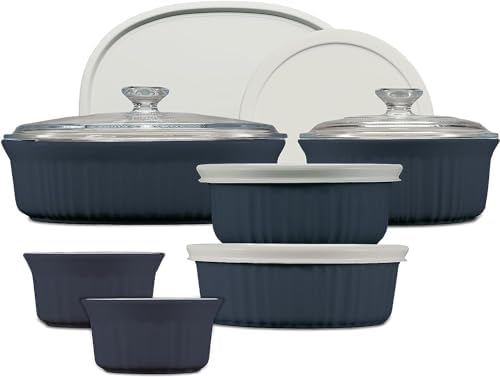 View full detailsCorningWare Ceramic Bakeware Set with Lids Chip and Crack Resistant Stoneware Baking Dish, Microwave, Dishwasher, Oven, Freezer and Fridge Safe, 12-Piece French Navy