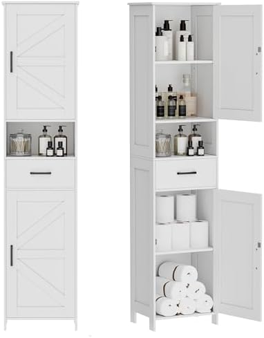 View full detailsHomhedy 67" H Tall Bathroom Storage Cabinet with 2 Barn Doors and 1 Drawer, Narrow Storage Unit, Adjustable Shelves, Floor Cabinet for Bathroom, Living Room, Entryway, Kitchen, White, (15.7" W)