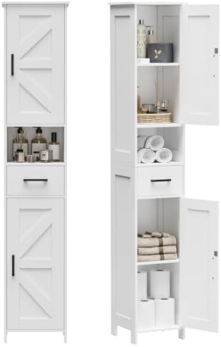 View full detailsHomhedy 67" H Tall Bathroom Storage Cabinet with 2 Barn Doors and 1 Drawer, Narrow Storage Unit, Adjustable Shelves, Floor Cabinet for Bathroom, Living Room, Entryway, Kitchen, White, (11.8" W)