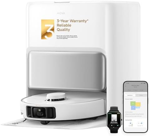 View full detailsMova P50 Pro Ultra Robot Vacuum and Mop, 19,000Pa Suction with Anti-Tangle Brush, Removable & Liftable Mop for Carpet & Floor, 167℉ Mop & Washboard Self Drying & Cleaning, Auto Empty & Refill