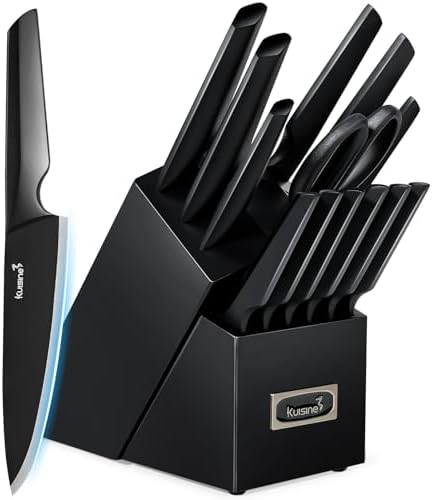 View full detailsKuisine Premium Knife Set,One-piece Steel Molding,High Carbon Stainless Steel Ultra Sharp,Non-slip Ergonomic Solid Steel Handle,Built-in Sharpener Knife Block Set,Luxury Gift(15PCS,Black)
