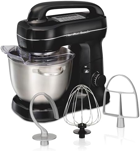 View full detailsHamilton Beach Electric Stand Mixer, 4 Quarts, Dough Hook, Flat Beater Attachments, Splash Guard 7 Speeds with Whisk, Easy-Carry Top Handle, Black