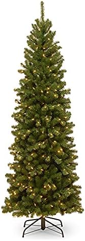 View full detailsNational Tree Company Pre-Lit Artificial Slim Christmas Tree, Green, North Valley Spruce, White Lights, Includes Stand, 7 Feet
