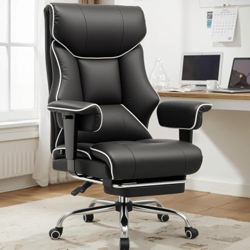 View full detailsCOMHOMA Big and Tall Office Chair 400lbs High Back Gaming Chair with Ergonomic Lumbar Support & Pocket Spring Cushion for Lower Back Pain Relief, Leather Executive Chair with Foot Rest, White/Black
