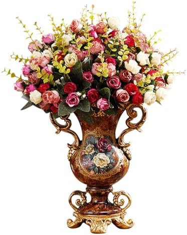 Elegant Vase Set: This retro luxurious european-style amphorae vase set with romantic simulated bouquets adds a touch of beauty to your home dec...
