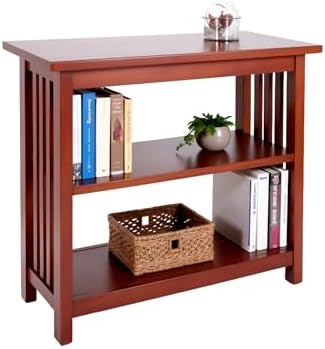 View full detailsMission Under Window Bookshelf with Vertical Slat Side Panels – Adjustable Two-Shelf Bookcase & Compact Storage Organizer for Office, Living Room, or Study by Alaterre Furniture (Cherry Finish)