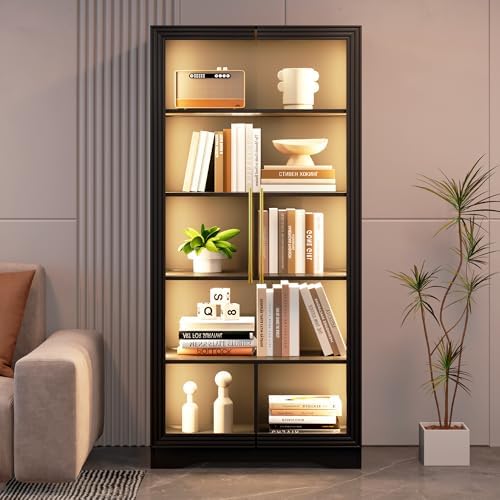 View full detailsLVSOMT Display Cabinet with Glass Doors, 65" Tall Bookcase with 3 LED Lights/Human Body Sensor, 5 Tier Display Cases for Collectibles, Adjustable Storage Shelves, Home Office, Living Room, Black