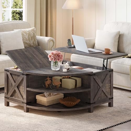 View full detailsYITAHOME Farmhouse Lift Top Coffee Table with Storage, Wood Cured Center Table with Charging Station&USB Port, Living Room Table w/Large Hidden Space, for Bedroom, Home Office, Dark Rustic Oak