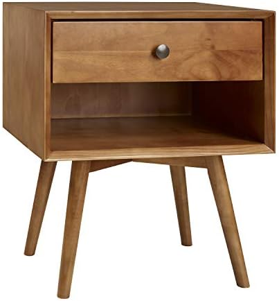 View full detailsWalker Edison Mid Century Modern Wood Nightstand Side Table Bedroom Storage Drawer and Shelf Bedside End Table, 1 Drawer, Caramel