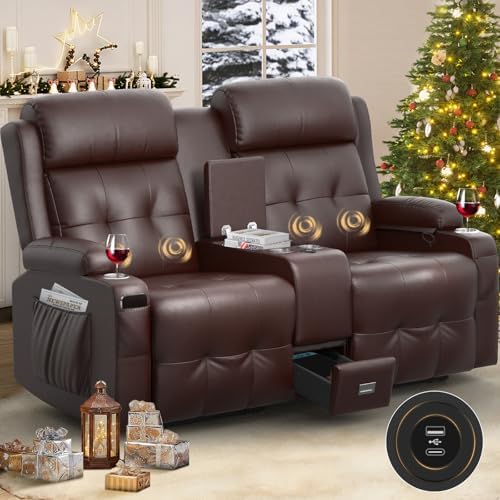 View full detailsReclining Loveseat, Massage Loveseat Recliner Sofa Heavy Weight Capacity, RV Love Seat Chair Clearance with Console, USB, Type C Port, Storage, Cup Holders, Wall Hugger Couch for Living Room