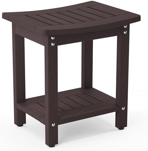 View full detailsLUE BONA HDPS Shower Bench Seat, Shower Stool for Inside Shower Waterproof, Bath Spa Shower Foot Stool for Shaving Legs with Storage Shelf, Weather Resistant/Non-Slip/Indoor or Outdoor Use, Espresso