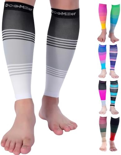 View full detailsDoc Miller Compression Calf Sleeve for Men & Women, 20-30 mmHg Graduated Support, Knee High, Running, Shin Support, Calf Sleeves, Striped Design, 1 Pair