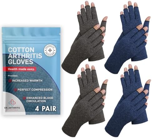 View full detailsDr. Arthritis Essentials Open-Fingertip Arthritis Gloves, Compression Gloves Ideal as Carpal Tunnel Gloves, Hand Brace, Fingerless Gloves Men Women (GreyNavy, L)