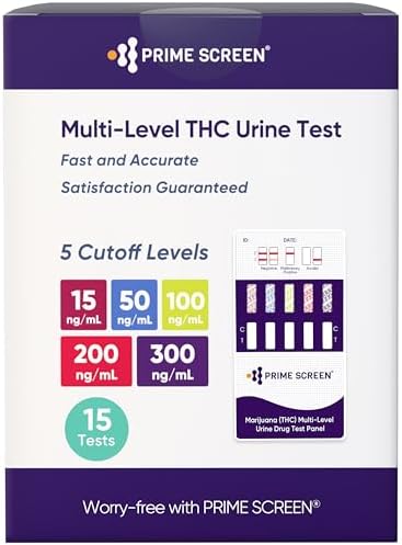 View full detailsPrime Screen Multi Level Marijuana(THC) Urine Test Kit.Highly Sensitive THC 5 Level Drug Test Kit. Detects at 15 ng/mL, 50 ng/mL, 100 ng/mL, 200 ng/mL and 300 ng/mL [ 15 Pack]