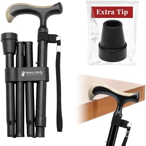View full detailsMerry Sticks Lightweight Foldable Walking Canes for Women and Men, Adjustable & Collapsible Walking Stick for Seniors, Non-Slip Ergonomic Handle with 1 Extra Replacement Cane Tip – Jet Black