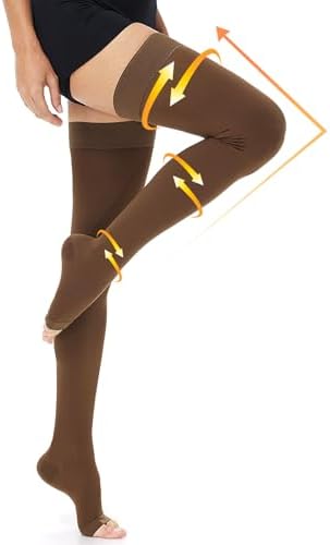 View full detailsOpen Toe Thigh High Medical Compression Stockings for Women & Men 20-30 mmHg Firm Graduated Support Hose Socks for DVT,Varicose Veins,Relief Shin Splints,Edema,Swelling