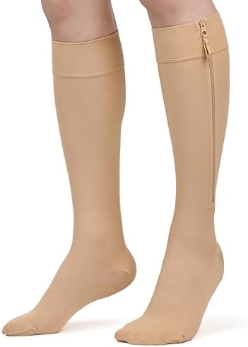 View full detailsKEKING® Zipper Compression Socks for Men Women, Closed Toe, 20-30mmHg Firm Support Knee High Zipper Compression Stockings for Wide Calf - Varicose Veins, DVT, Shin Splints, Edema, Nursing, Beige XL