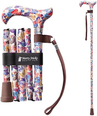 View full detailsMerry Sticks Lightweight Foldable Walking Canes for Women and Men, Adjustable & Collapsible Walking Stick for Seniors, Balancing Mobility Aids, Ergonomic Handle & Wrist Strap - Butterflies