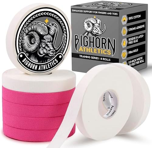 View full detailsBighorn Athletics Jiu Jitsu Finger Tape, 0.5-Inch x 45-feet, 8-Rolls | Residue-Free, Zinc Oxide Adhesive | Athletic Sports Tape for BJJ, Wrestling, Climbing, Volleyball, Hands & Toes | Pink & White