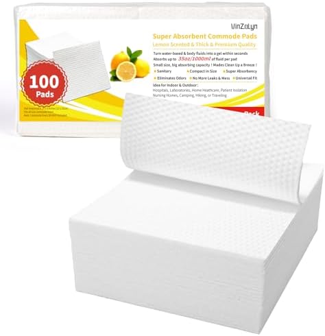 View full detailsLemon Scented Absorbent Pads for Commode, 100 Pcs, Light Scent Commode Pads for Bedside Commode Liners, Medical Grade, Disposable, Simple for Camping, Seniors and Disabled