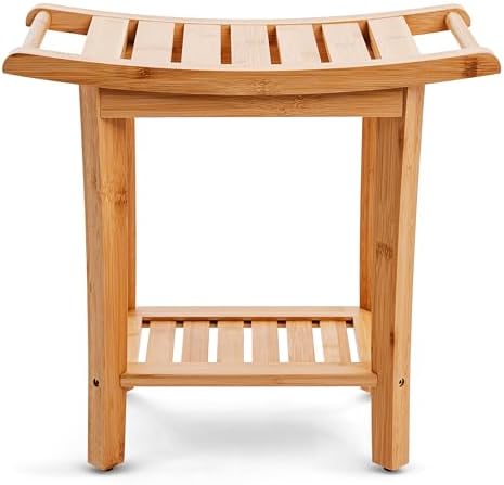 Bamboo Shower Bench with Storage Shelf, Shower Stool for Inside Shower, Waterproof Shower Bench Seat, Shower Chair for Inside Shower, Wood Bench, Bathroom Bench, Foot Rest Shaving Stool for Shower