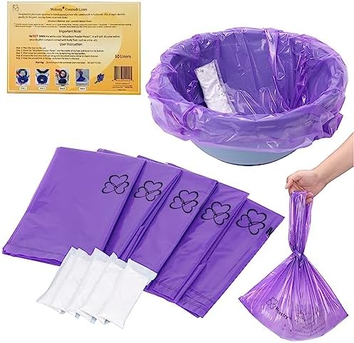 View full detailsCommode Liners with Super Absorbent Pads - 60 Pack Disposable Bedside Commode Bags with Gel Pads, Individually Wrapped,Universal Fit, Leak-Proof for Adult Potty Chairs & Camping Toilets