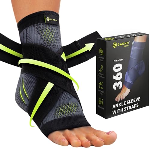 View full detailsGARNO Ankle Brace – Compression Foot Sleeve with Adjustable Straps for Men & Women, Plantar Fasciitis & Achilles Support, Heel & Arch Pain Relief, Swelling & Injury Recovery, Protection for Sports, Running & Basketball (One Size, Black)