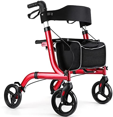 View full detailsRollator Walkers for Seniors-Folding Rollator Walker with Seat and Four 8-inch Wheels-Medical Rollator Walker with Comfort Handles and Thick Backrest-Lightweight Aluminium Frame Red