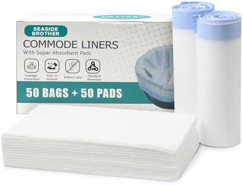 View full detailsCommode Liners with Absorbent Pads, 50 PCS Bedside Commode Liners and 50 PCS Commode Pads, Toilet Liners Pads Absorb up to 35 oz, Commode Bags Universal Fit All Standard Toilet Chair Bucket