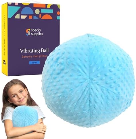 View full detailsSpecial Supplies Vibrating Ball Pillow Sensory Pressure Activated for Kids and Adults, Plush Minky Soft Cover with Textured Therapy Stimulation Bumps, 3 Vibration Modes, Music & Voice Recording- Blue