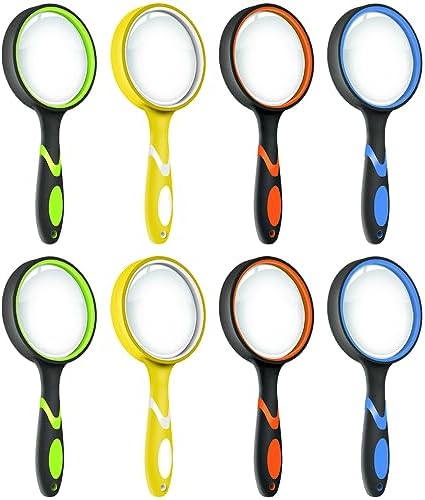 Leffis 8 Pack Magnifying Glass, 50mm 10X Glasses Lens Reading Magnifier for Kids and Seniors, Non-Slip Handheld Magnifying Glass for Close Work, Nature Exploration