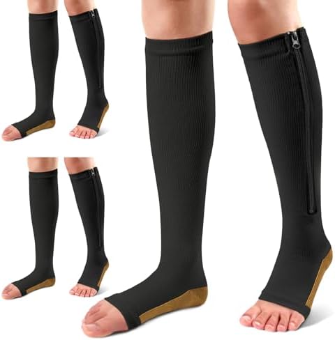 View full detailsAilaka 3 Pairs Compression Socks with Zipper, 15-20 mmHg Medical Knee High Compression Socks for Men Women, Open Toe Socks for Varicose Veins, Edema, Recovery