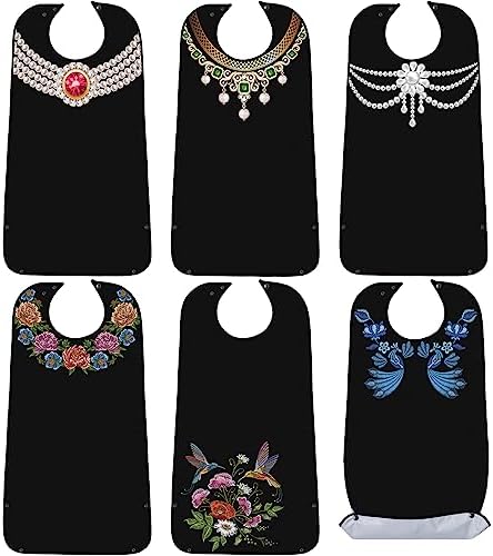 SATINIOR 6 Pieces Adult Bibs for Women Washable Reusable Clothing Protector with Crumb Catcher Beautiful Pattern Bibs