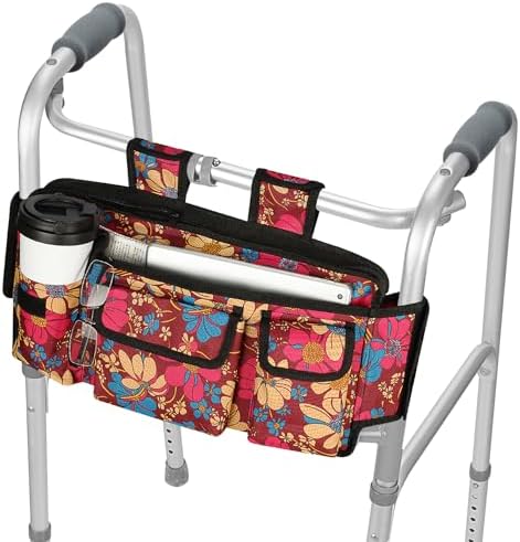 View full detailssupregear Walker Bag, Folding Walker Basket Organizer Pouch Tote with Multiple Pockets and Zippered Compartment for Walker Rollator Scooters Wheelchair, Hook & Loop Design Storage Bag (Floral)