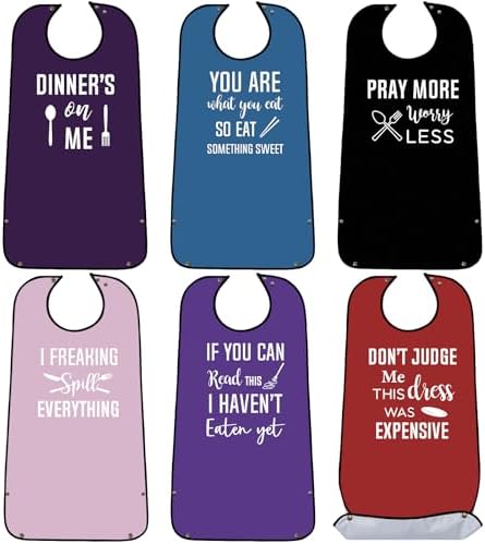View full detailsSATINIOR 6 Pieces Adult Bibs for Women Washable Reusable Clothing Protector with Crumb Catcher Beautiful Pattern Bibs