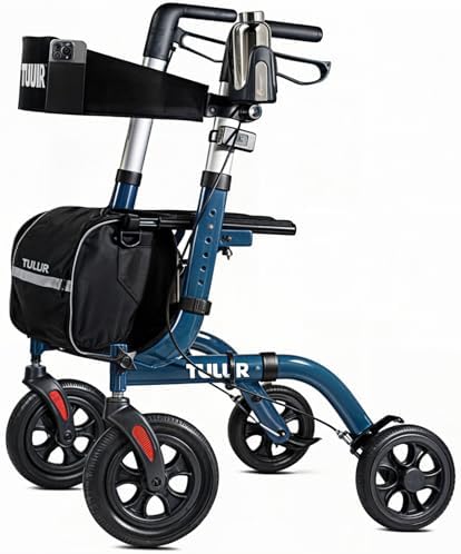 【All-Terrain Dominance】TULUR Rollator Walker for seniors features 12'' Front & 10'' Rear Super-Grip Wheels - Conquer Grass, Snow & Uneve...