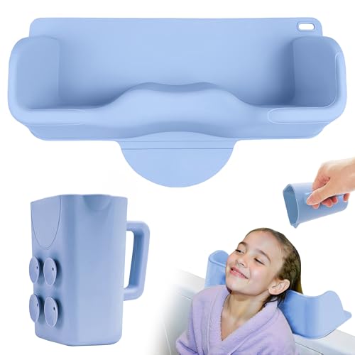 View full detailsPortable Hair Washing Station for Kids, Toddlers, Children, Teens, Silicone Hair Washing Basin for Sink or Bathtub, Tear-Free Shampoo Bowl with Rinser Cup, Neck Support for kids, Blue