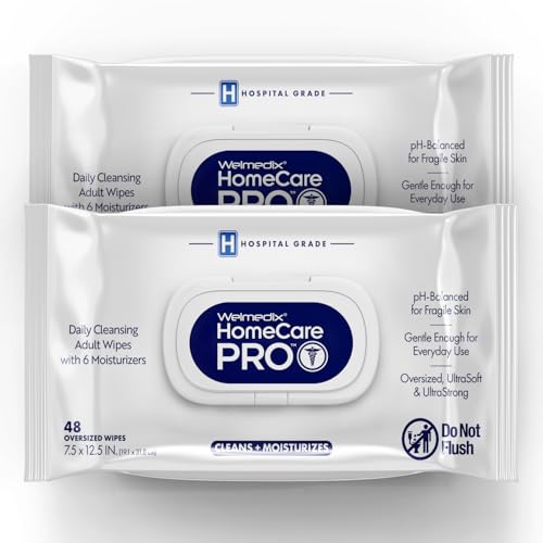 View full detailsHomecare Pro Oversized Daily Cleansing Adult Wipes With 6 Moisturizers Wet Cleansing, Rinse Free, Bathing Wipes, Hospital Grade pH Balanced for Fragile Skin - | 48 Count XL |- 2 Pack