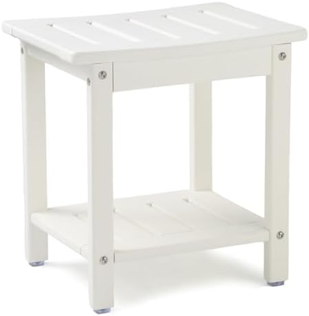 View full detailsShower Chair, HDPE Shower Bench for Inside Shower to Sit On It, Shower Stool with Storage Shelf 2-Tier Spa Stool for Elderly,Water Resistant & Non-Slip Design Shower Seat Bench(White S Size)