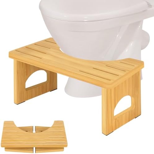 View full detailsFoldable Toilet Stool, 7.5 Inches Bamboo Toilet Stool Squat for Adults, Collapsible Poop Stool for Bathroom, Potty Step Stool with Non-Slip Strip, Portable Toilet Foot Pooping Stools