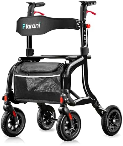 View full detailsFarani All Terrain Rollator Walkers for Seniors, Lightweight Foldable Rolling Walker with Seat, Sturdy Integrated Molding Frame, Height-Adjustable Handles & Backbrest, 8" Rubber Wheels,Black