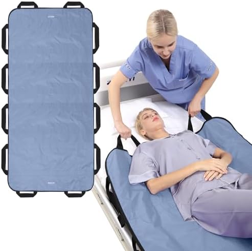 View full detailsMultipurpose 72" x 40" Positioning Bed Pad with Reinforced Handles - Reusable & Washable Transfer Sheet for Turning, Lifting & Repositioning - Double-Sided Nylon Fabric, Blue Gray